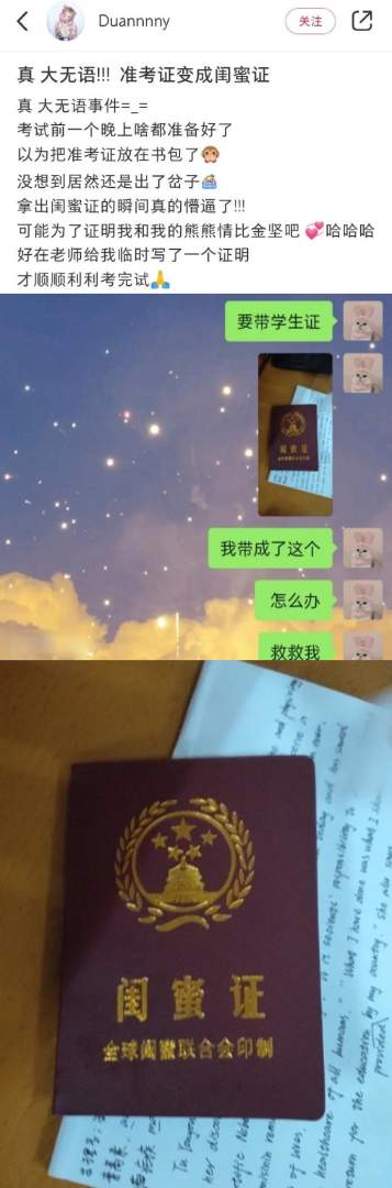 准考证带成了闺蜜证。