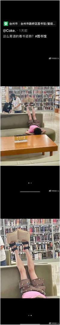 这看书姿势着实有点奇葩。