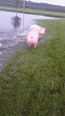 农场遭遇暴雨后被淹,结果猪猪们都玩儿high了