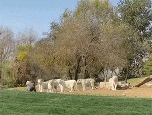 趴坐在7只白虎面前。